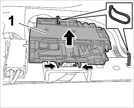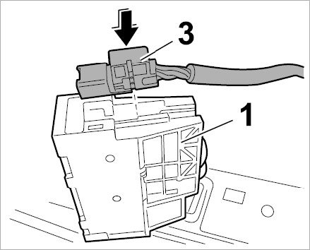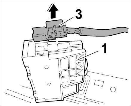 3. Release plug -1- -(press on small arrows)- and remove it.