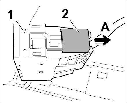 4. Move the cover -2- of the plug -1- in the direction of the arrow -A- and remove it.