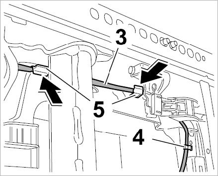 6. Cut tie-wrap -4- and remove electrical lead -3- from the metal clips -5-.