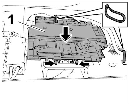 7. Push on the plug -1- until the locking tabs engage audibly.