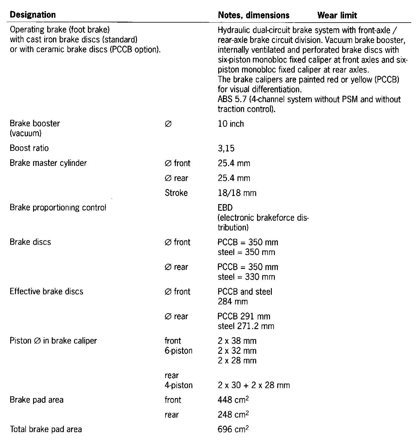 - GTS-vehicles as of model year 2004 are equipped as standard with a conventional brake system (cast iron brake discs) - and with PCCB brakes as an option.