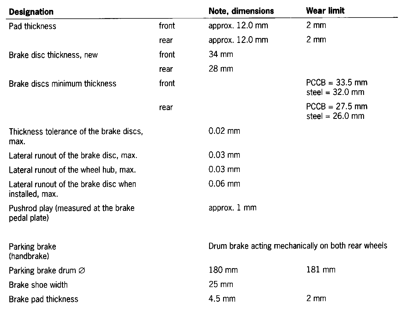 - Different brake pads (brake pad version) are used for cast iron brakes than for PCCB brakes. Observe allocation as per Spare Parts Catalogue at all times.