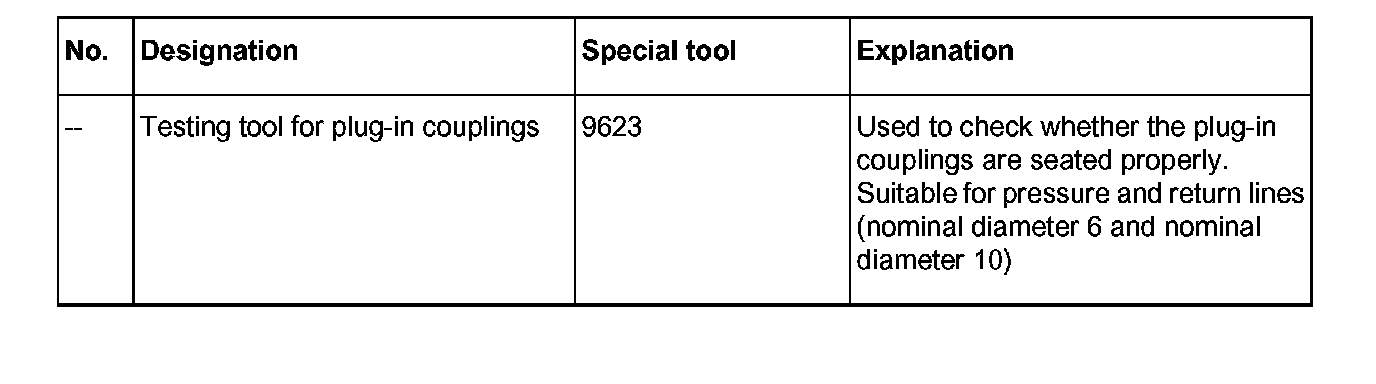 Correct engagement must be checked with a gentle pull. Use special tool 9623 for this purpose