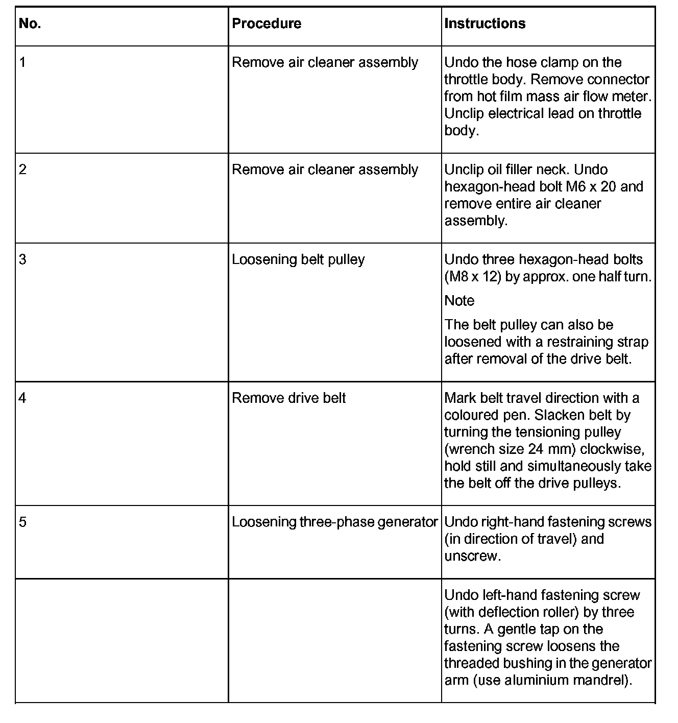 4 Relieving and removing drive belt