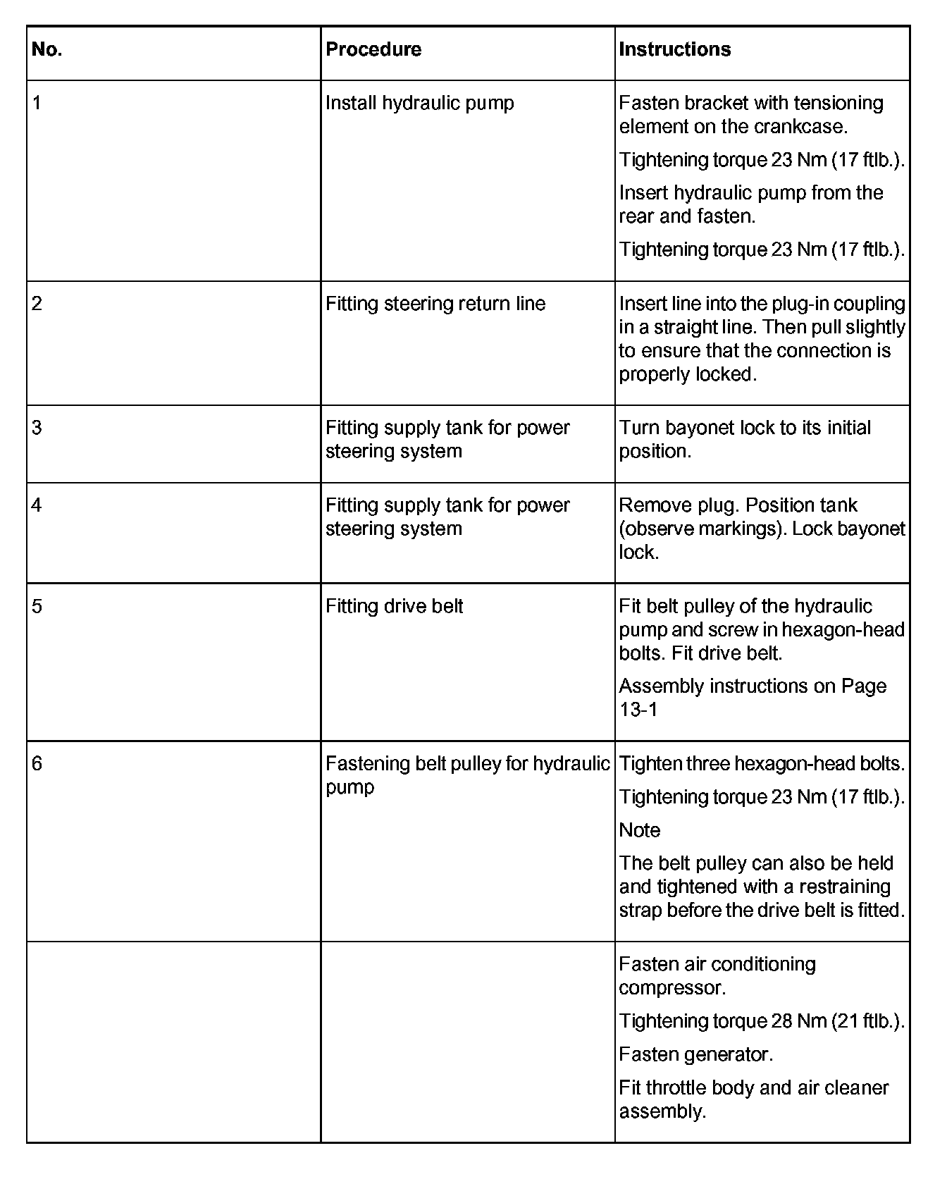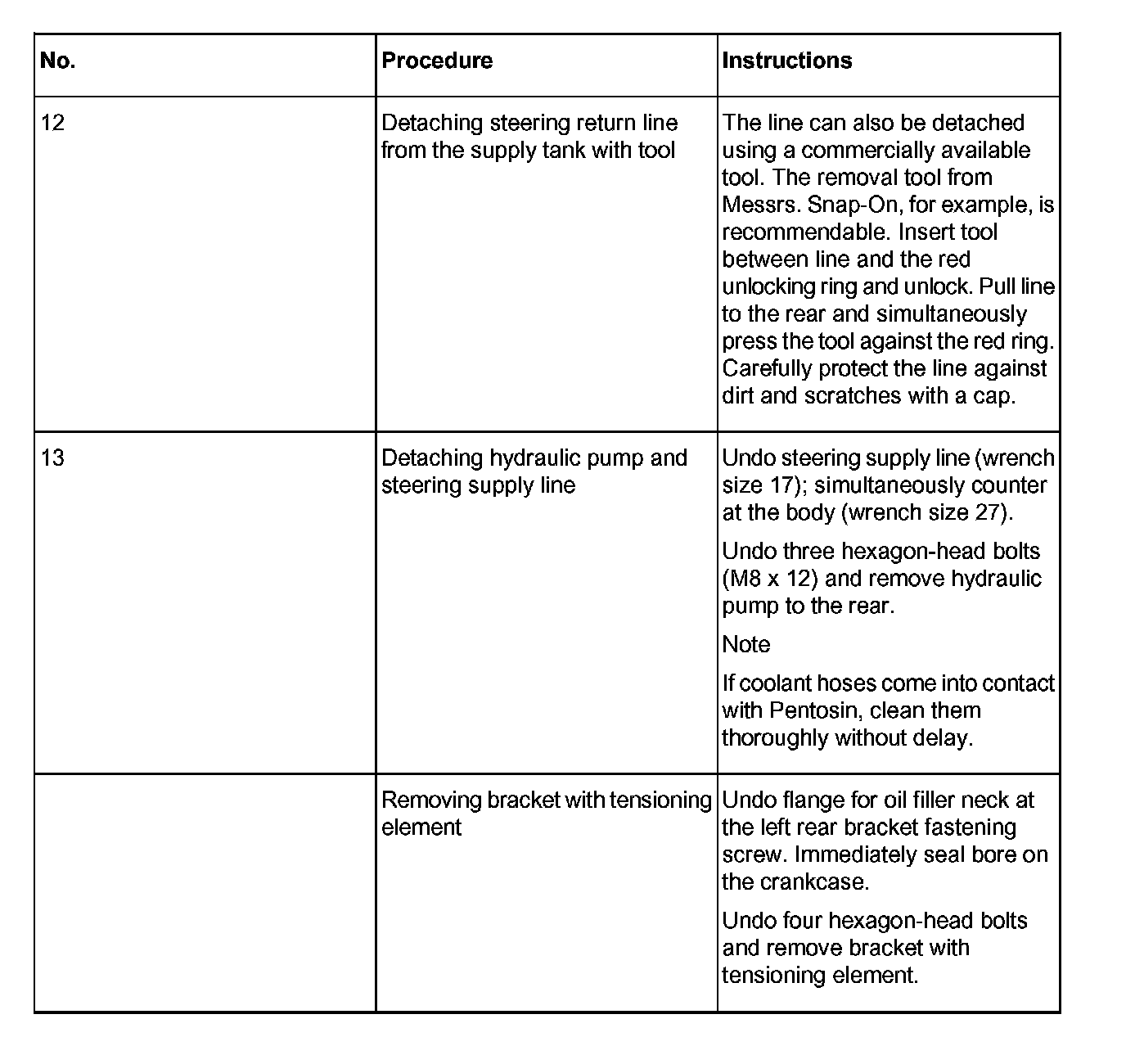 13 Detaching hydraulic pump and steering supply line
