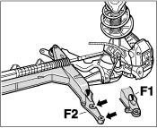 ^ The previous front-axle cross member -F1-, with one fastening screw securing it to the body (per side) is still available as a spare part.