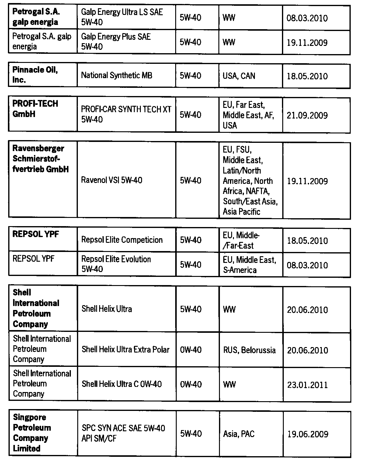 Overview of Approved Porsche A40 Engine Oils (37/08)