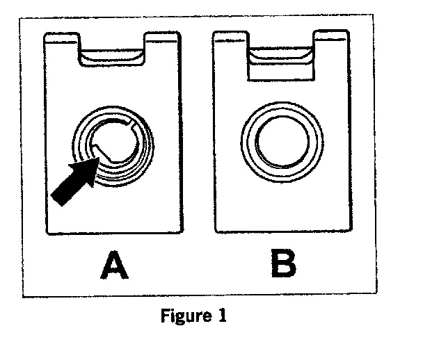 The part number for the speed nut has not changed and therefore there is a chance that some "previous" inventory may be in the "distribution pipeline". To distinguish between them (modified/previous speed nut): The fastening bore is narrowed on one side on the modified speed nut (Figure 1, Item A: arrow). The previous speed nut has a round fastening bore (Item B).