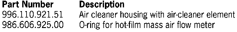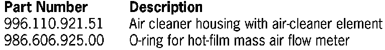 2. Remove hot-film mass air flow meter from old air cleaner housing. Replace 0-ring on hot-film mass air flow sensor with a new 0-ring (part no. 986.606.925.00) and fit the hot-film mass air flow sensor into the new air cleaner housing.