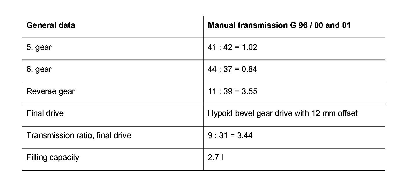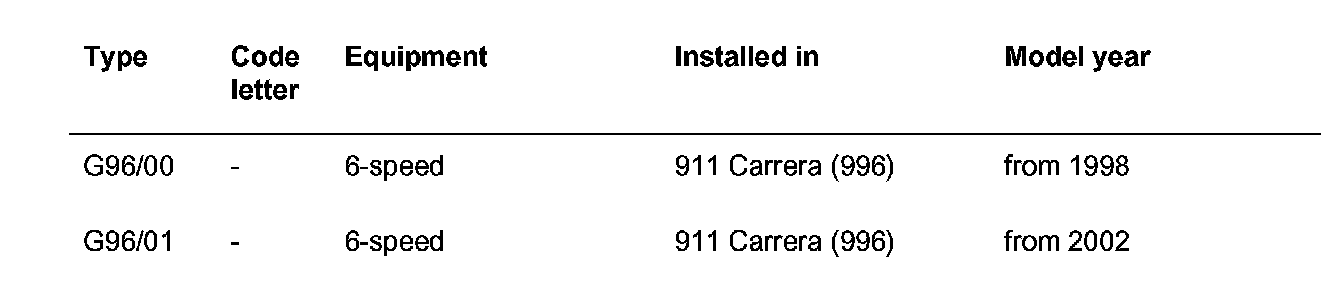 6 Speed Manual Transmission G96/00 and G96/01:
