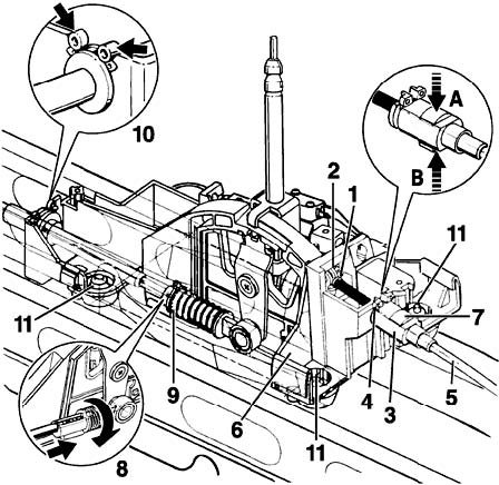 Press the retaining clip (10) together and carefully pull the cable upward out of the support bracket.