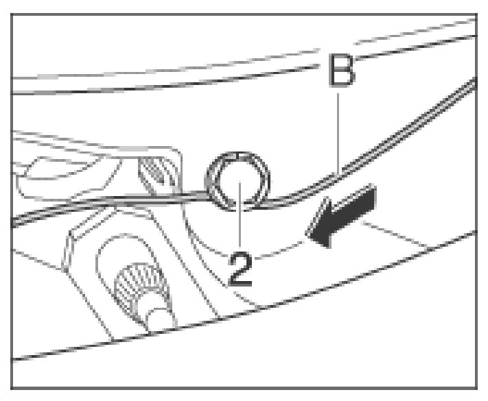 a. Attach the loose end of the cutting thread -B firmly at a suitable point on the body with the fastening screw -2- of a component (e.g. wiper motor fastening). To do this, unscrew the fastening screw, wind the cutting thread -B around the screw and tighten the fastening screw again.