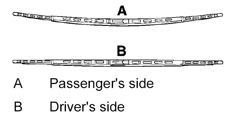 NOTE: The wiper blades for the driver's and passenger's side are different. The wiper blade on the driver's side is straight. On the passenger's side it is curved (see illustration). This arrangement applies to left-hand drive and right-hand drive vehicles.