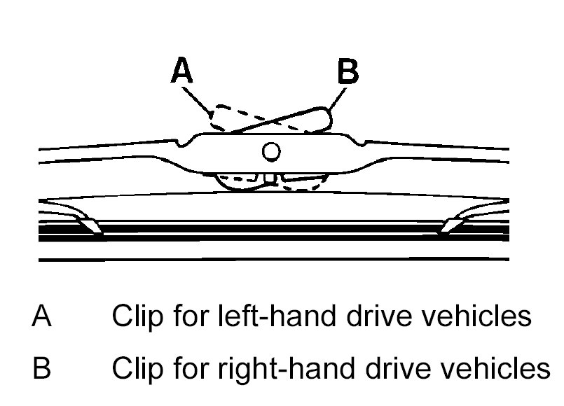 The clip installation position must be observed when installing the wiper blades for left-hand drive and right-hand drive vehicles.