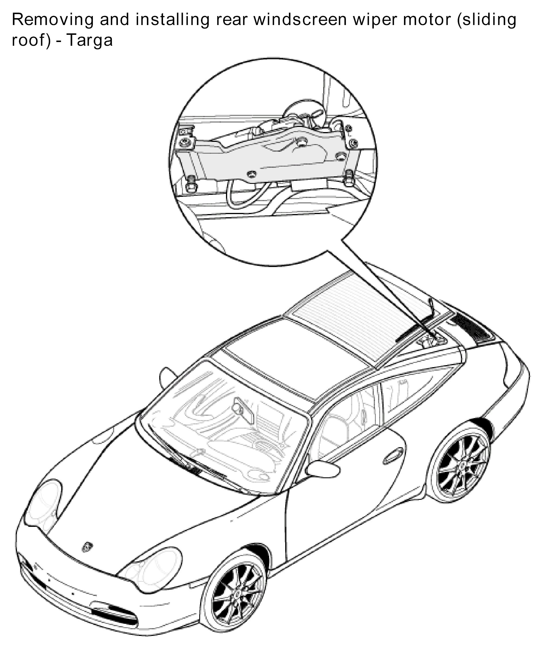 Removing and Installing Rear Windscreen Wiper Motor (Sliding Roof) - Targa