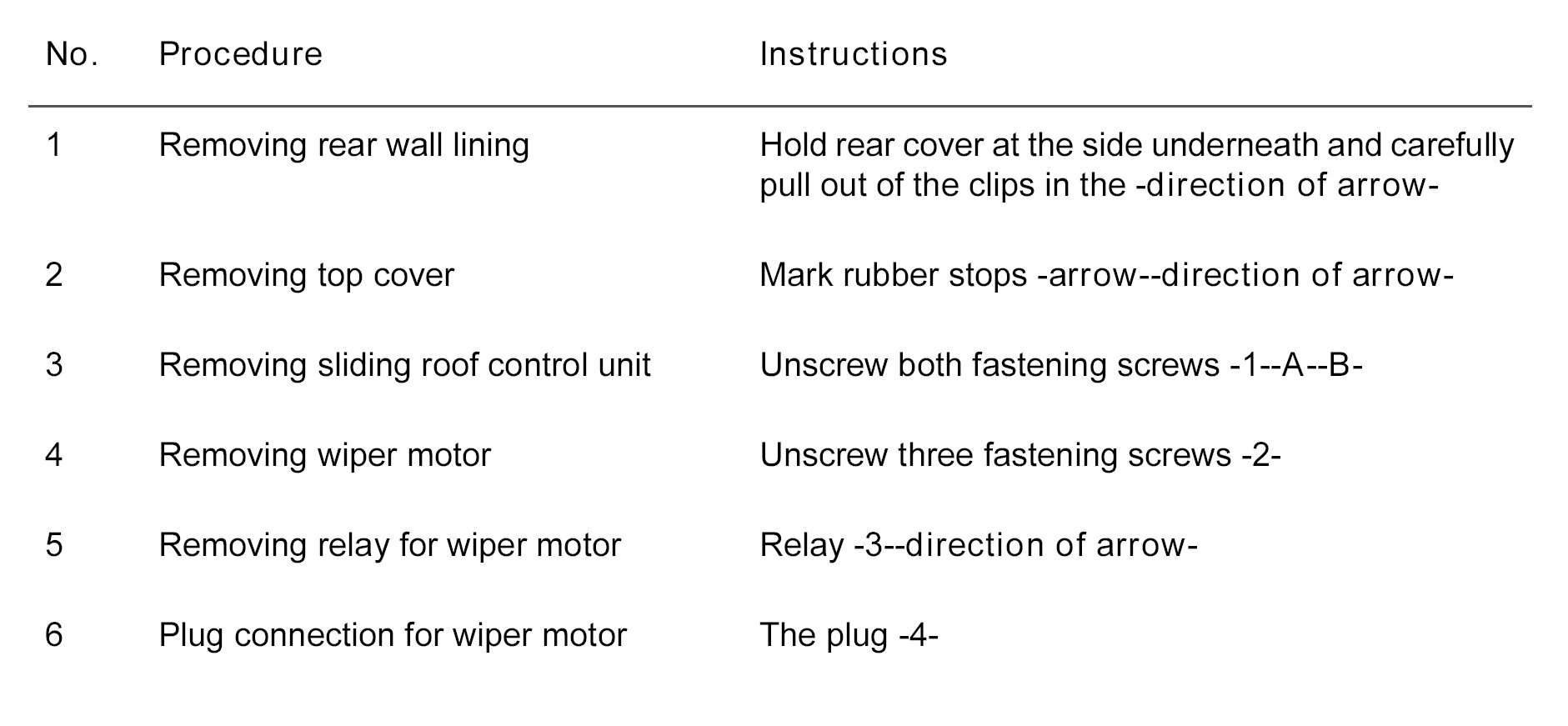 Removing And Installing Rear Windscreen Wiper Motor (sliding Roof) - Targa