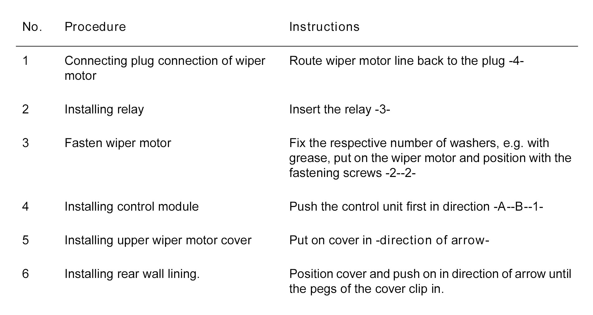 Installing rear windscreen wiper motor