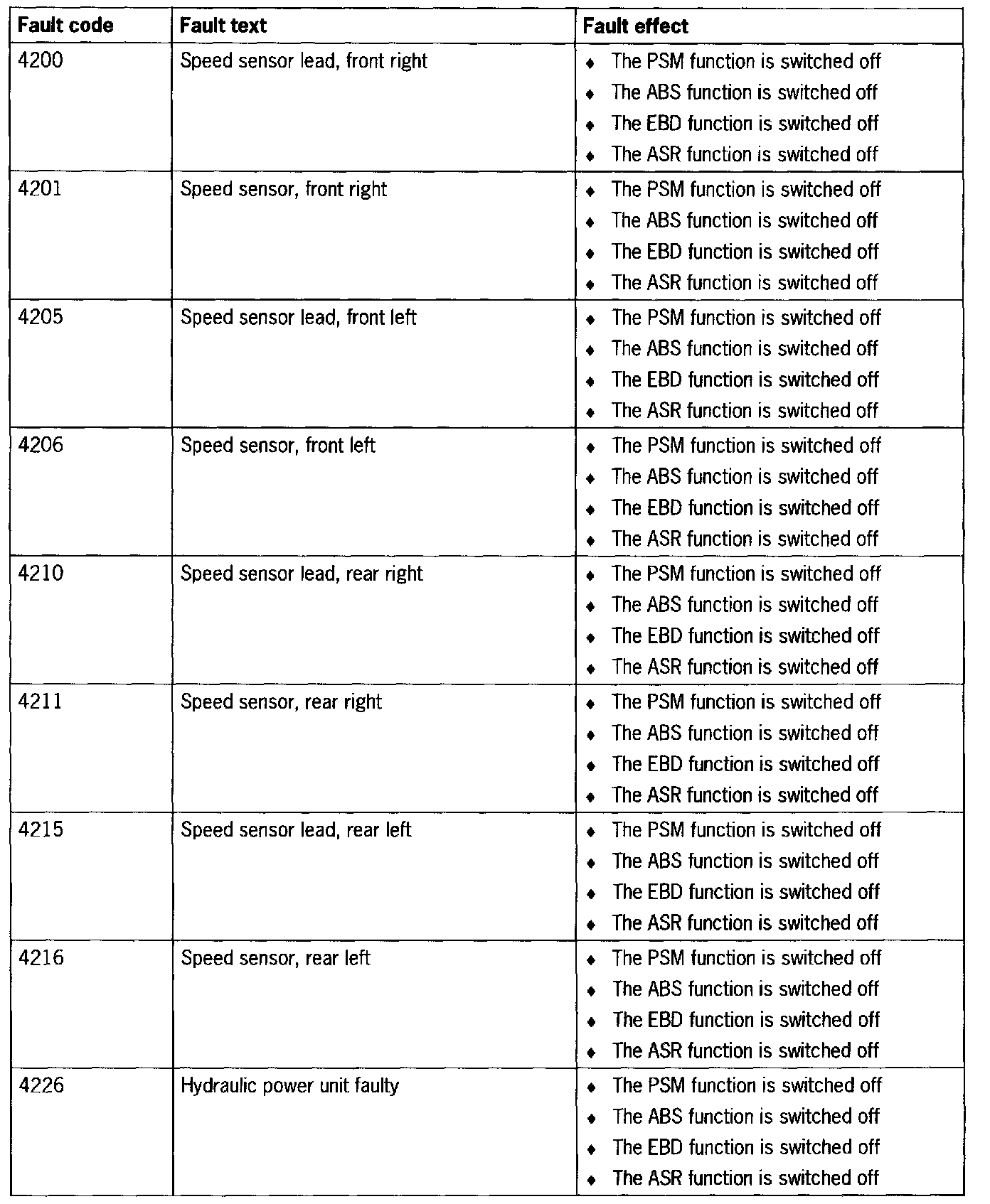 Fault Code 4200 - 4226: