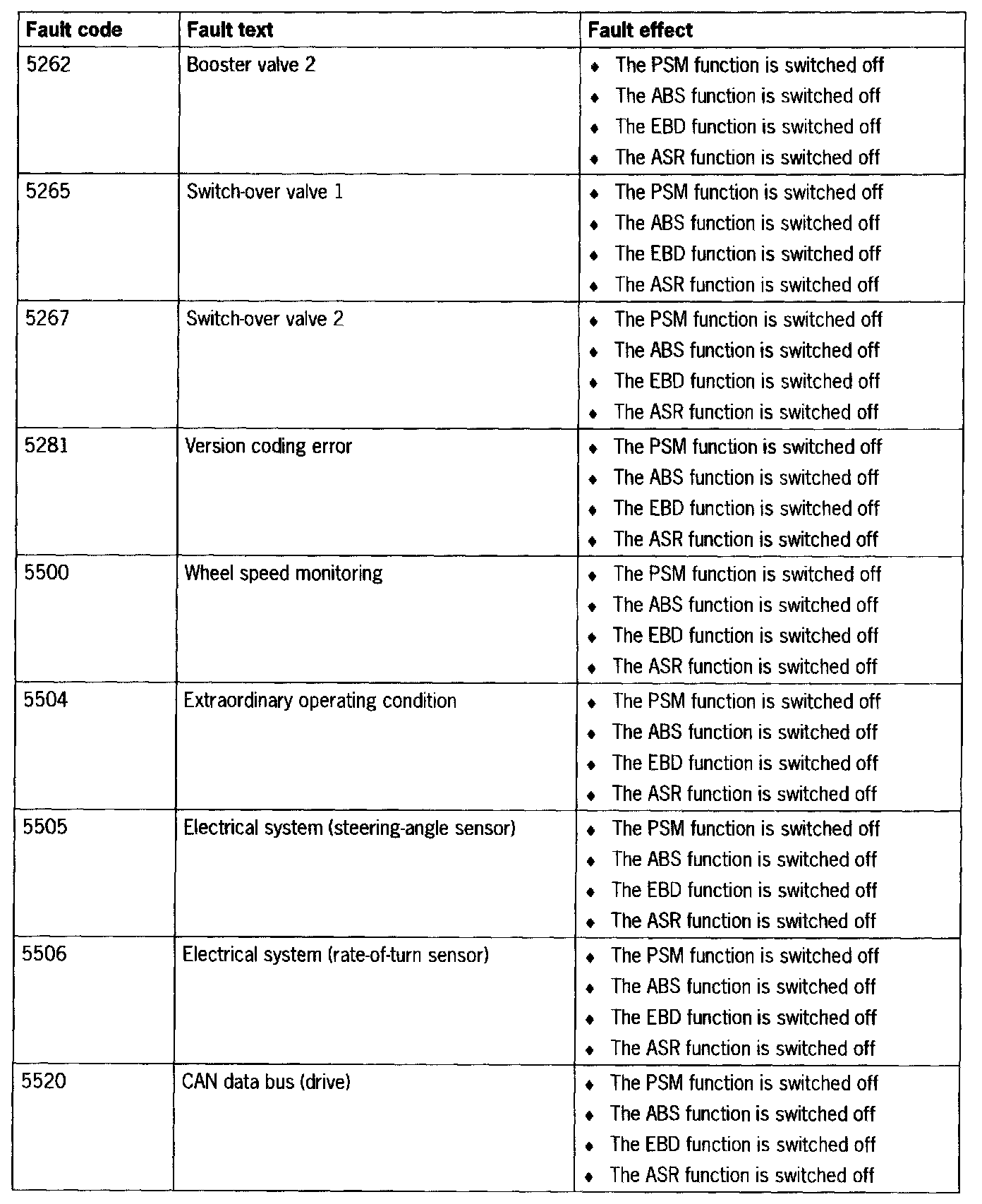 Fault Code 5262 - 5520: