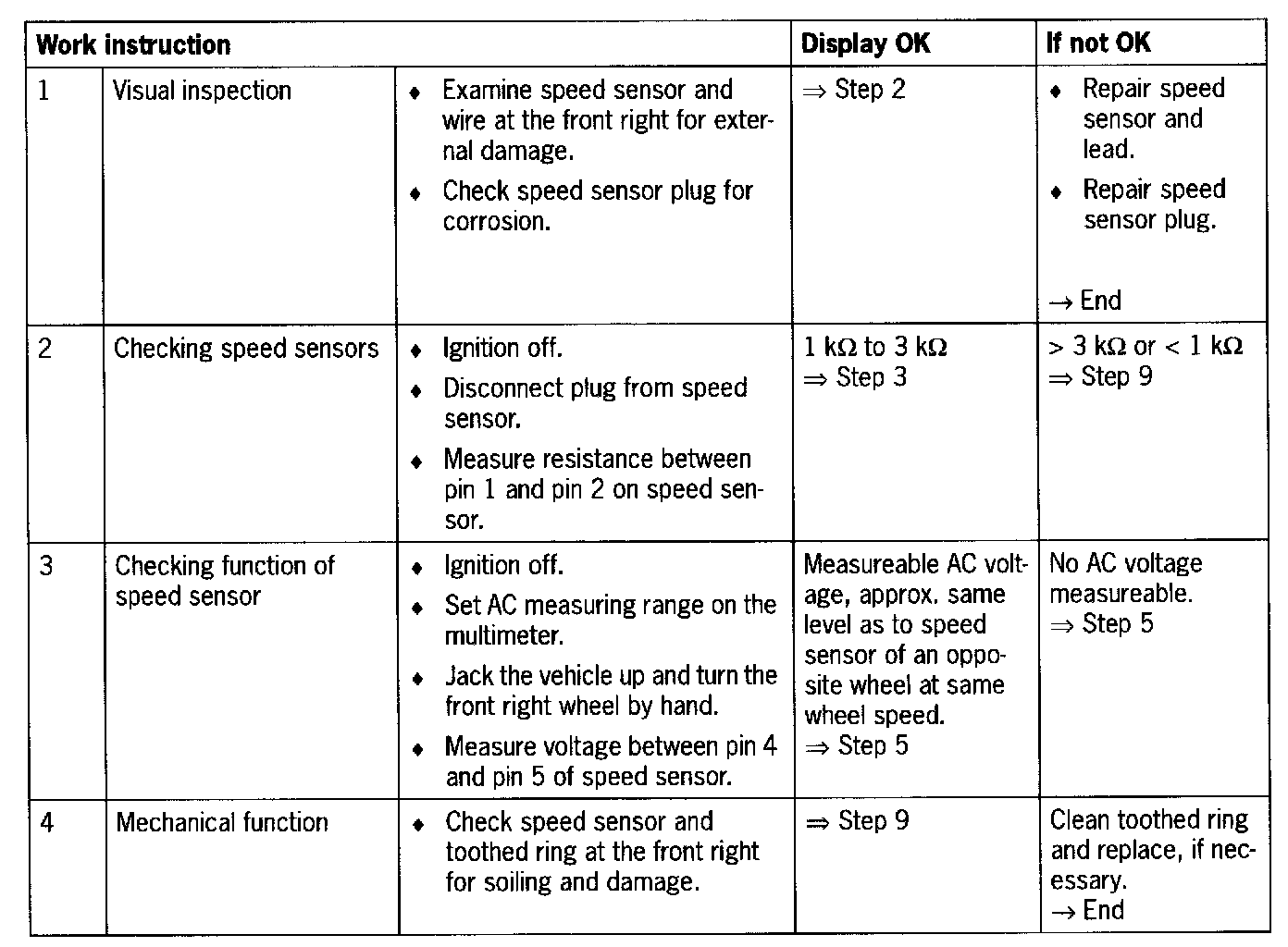 - Short circuit to B+/ground or open circuit between control unit and speed sensor