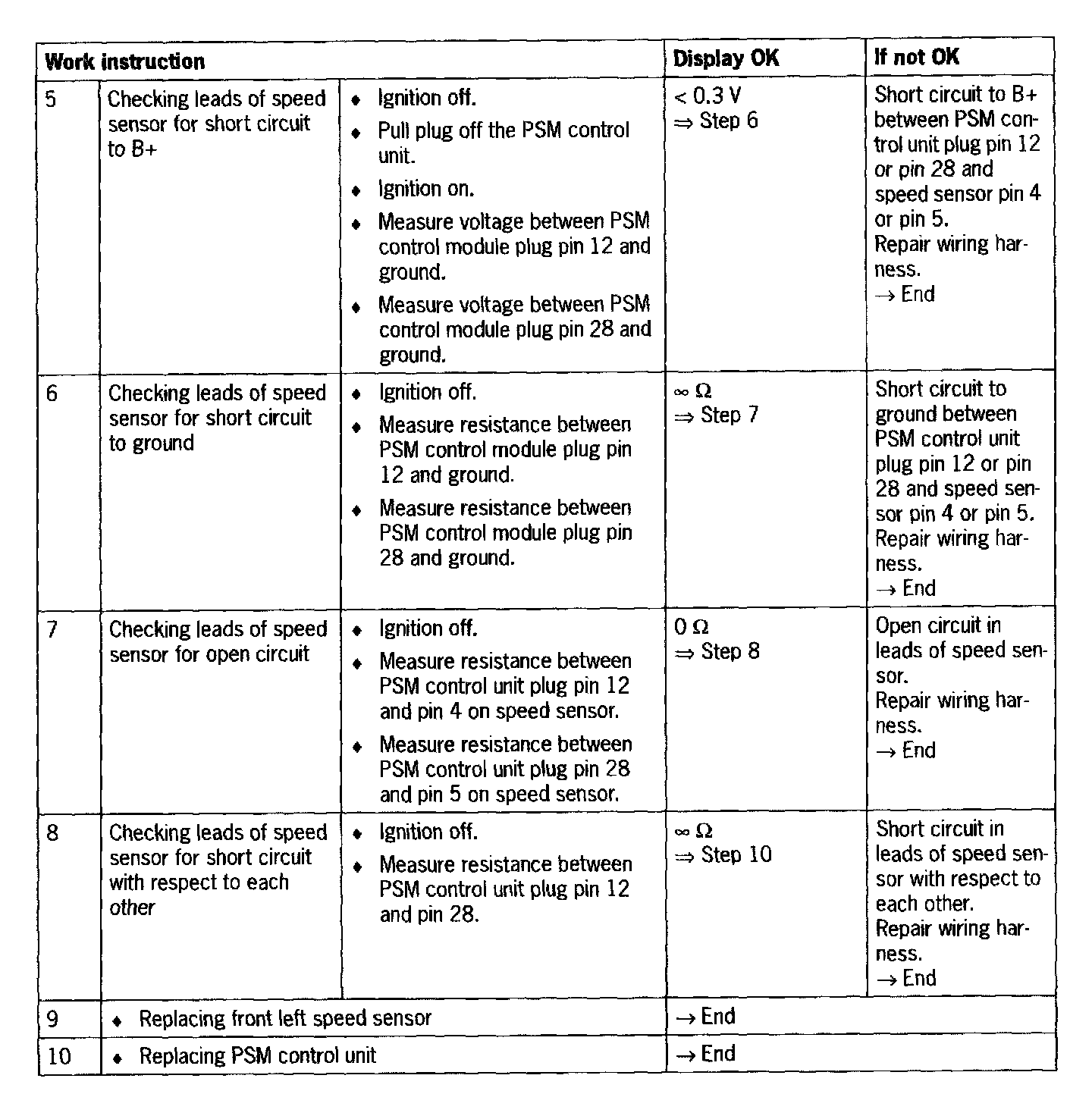 - Short circuit to B+/ground or open circuit between control unit and speed sensor