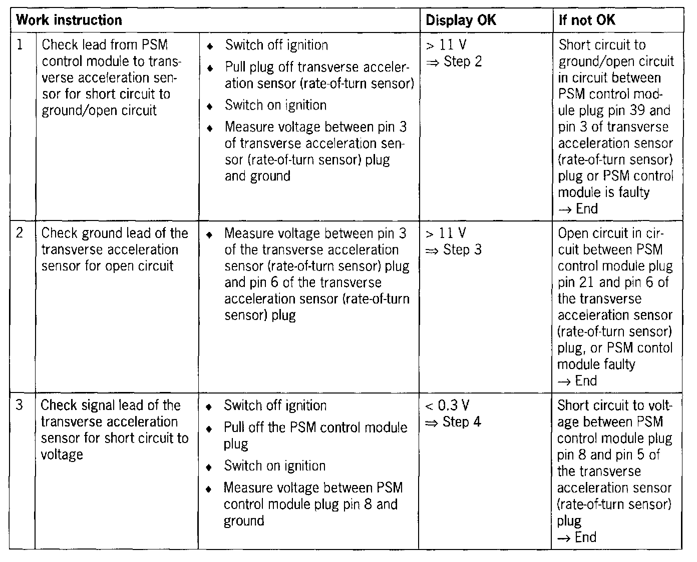 The following troubleshooting procedure applies to the transverse acceleration sensor (rate-of-turn sensor) 996.606.145.00 as of 08/00