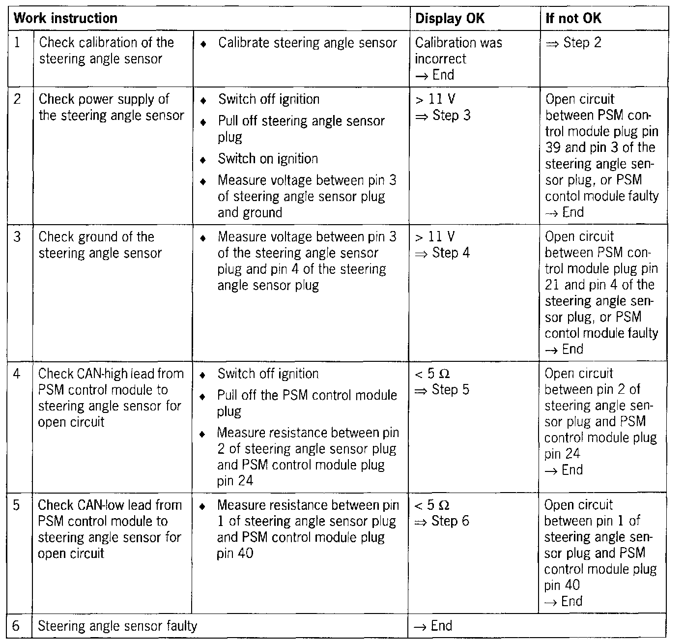 NOTE: Calibration of the steering angle sensor must be performed on a measuring platform. The steering angle sensor must be calibrated after work has been carried out on the running gear in the area of the front axle. The security code is required for calibration of the steering angle sensor. The security code is read with the PST2 under menu item "Actual values". Calibration is described under Steering Angle Sensor, Traction Control - Adjustments - Calibrating steering angle sensor.