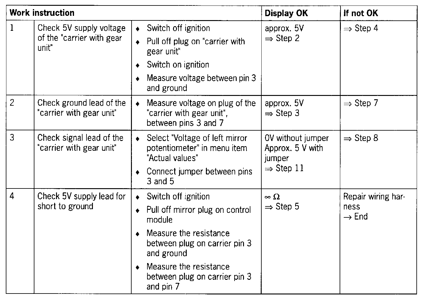 - Open circuit in supply lead to pot. for left rearview mirror