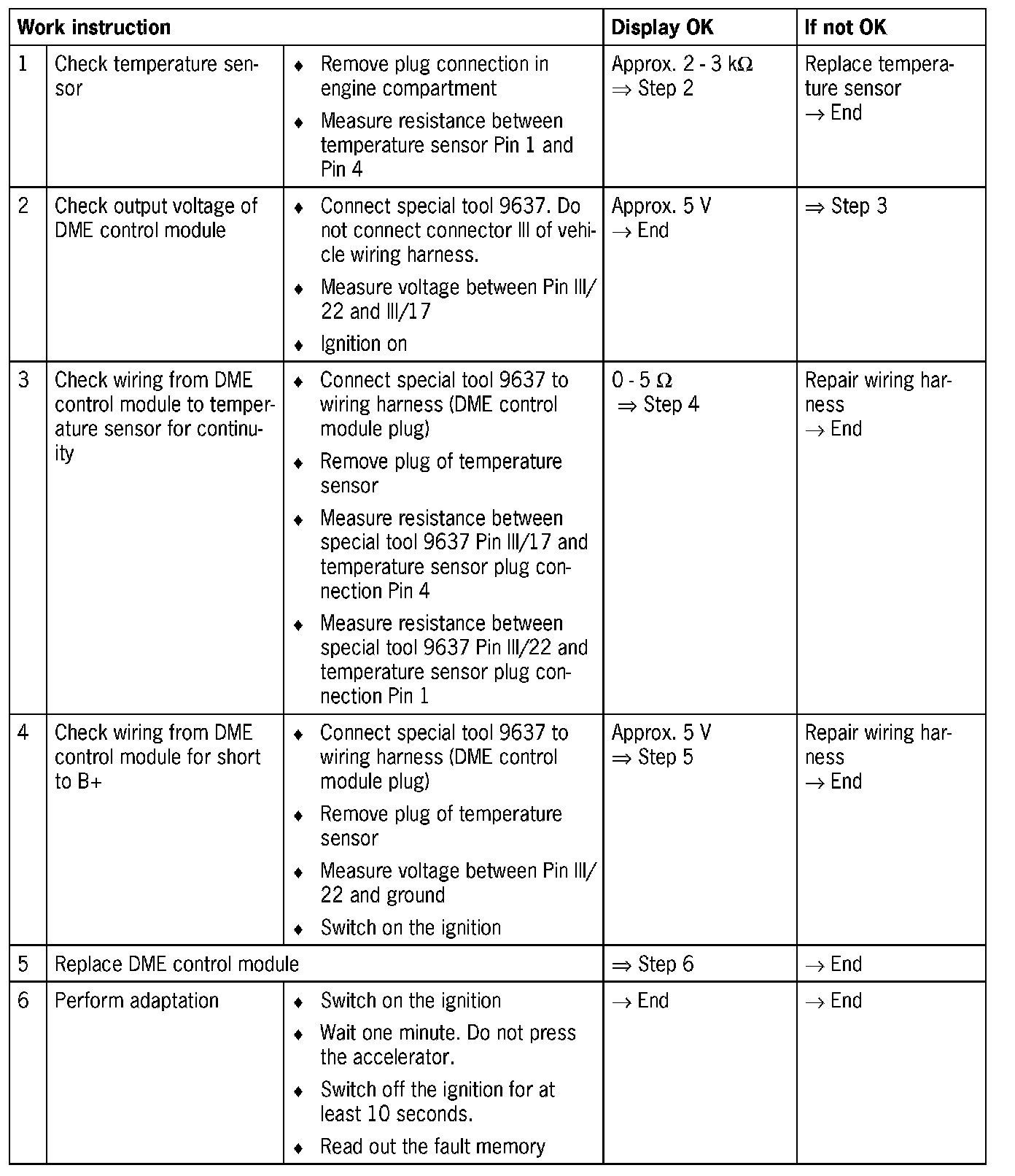 - A fault is recorded after a debounce time of 0.4 seconds if an engine temperature of less than -45 °C is measured.