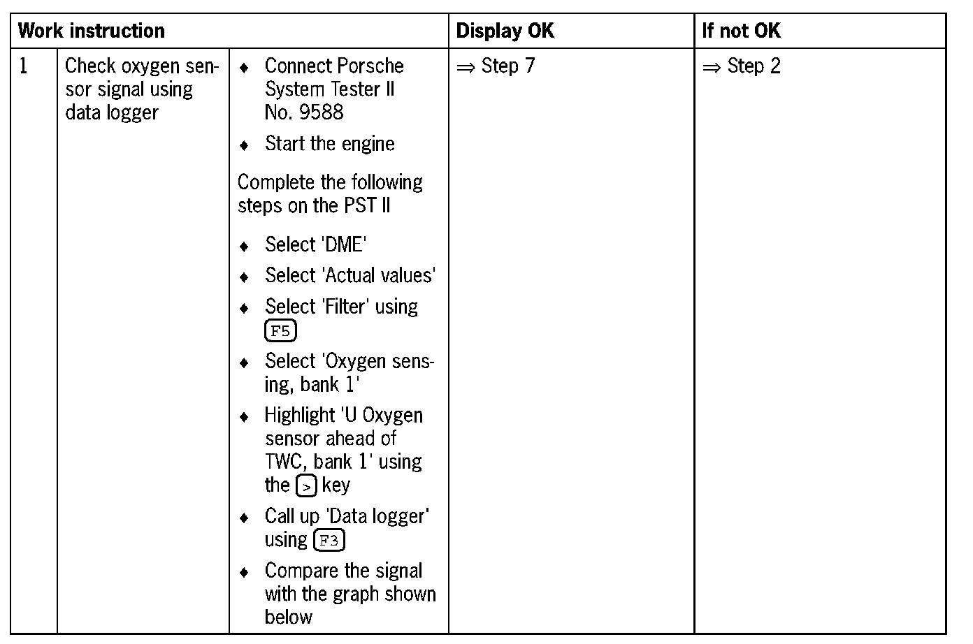 NOTE: Do not use contact spray on the oxygen sensor plug connections as this may cause irreparable damage to the wiring (contamination of the oxygen sensor via the reference air channel).