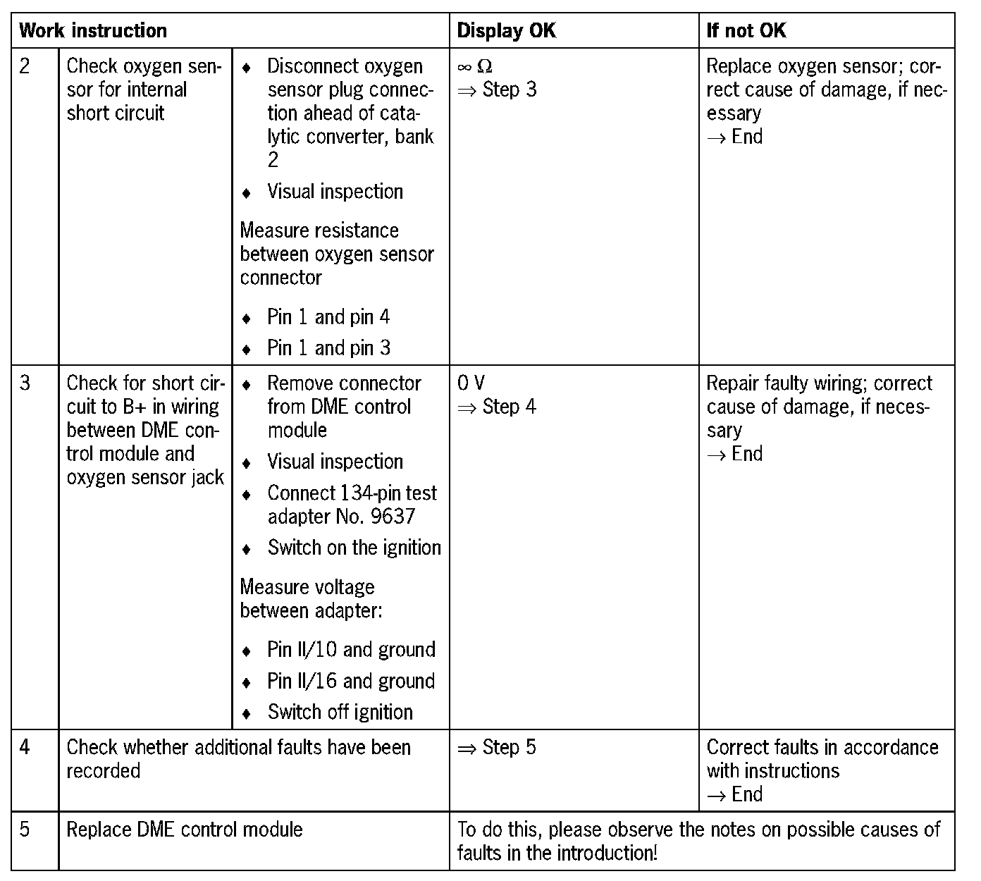 NOTE: DTC P0132 is stored by the DME control module when the sensor voltage is continuously above 1.5 V for more than 5 seconds.