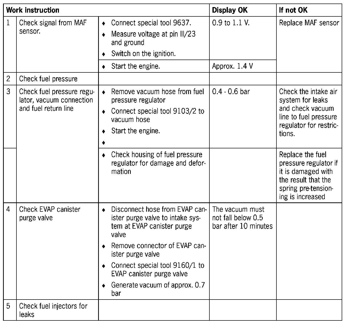 - Contrary adaptation values in connection with misfiring point to incorrectly adjusted control times - check control times and adjust if necessary.