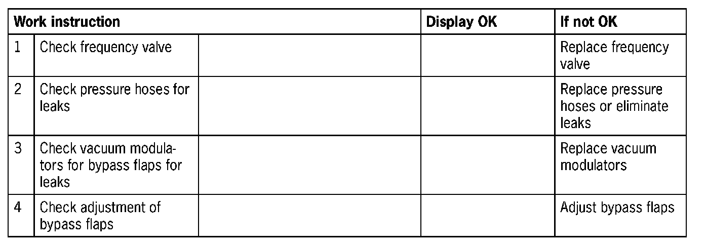 - Leakage at pressure hoses from frequency valve to the bypass flaps