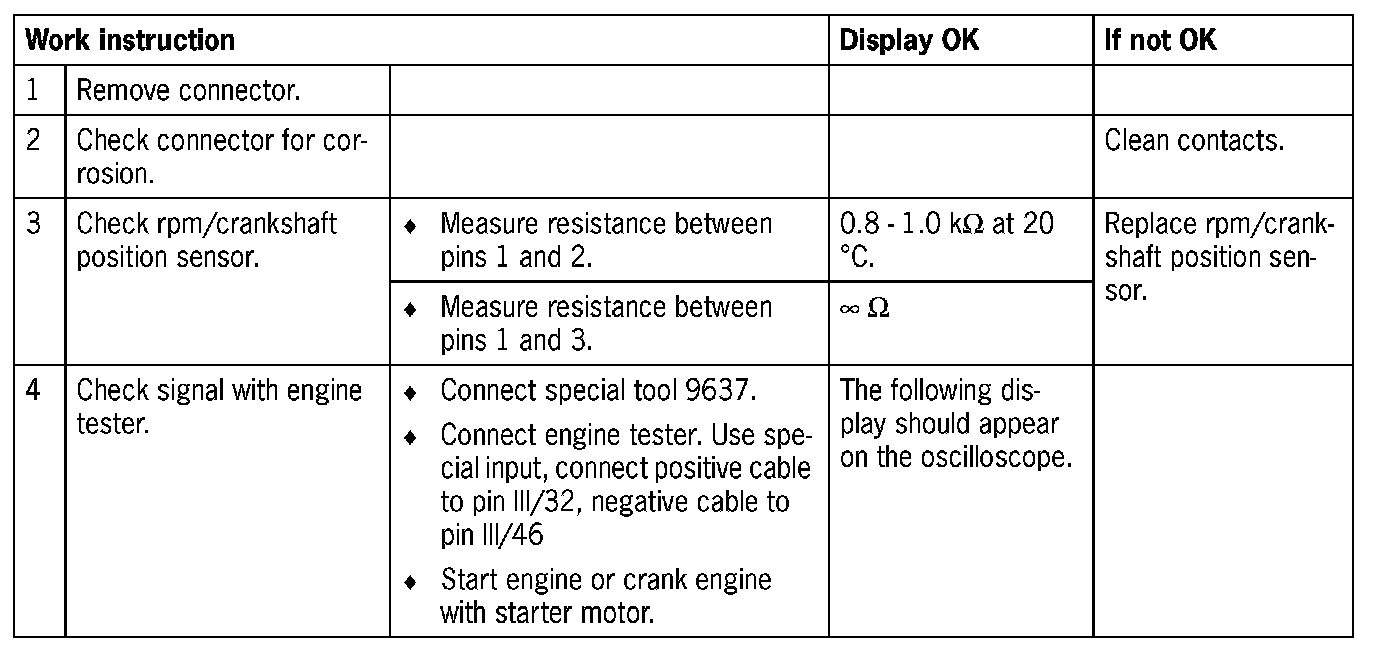 - Rpm/crankshaft position sensor faulty