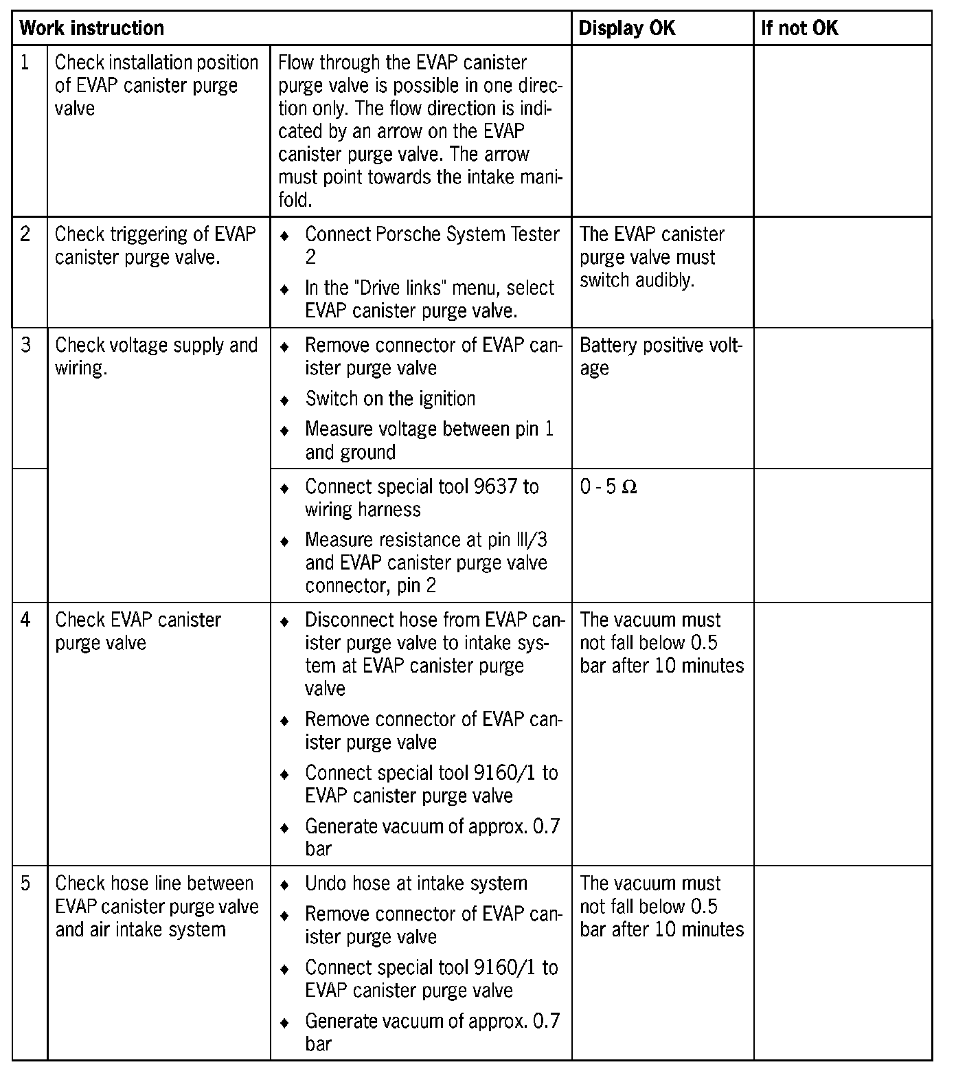 NOTE: Fuel tank ventilation diagnosis is initiated with the Porsche System Tester 2 in the "Short test" menu. This reduces the time elapsed after engine start-up to 30 seconds.