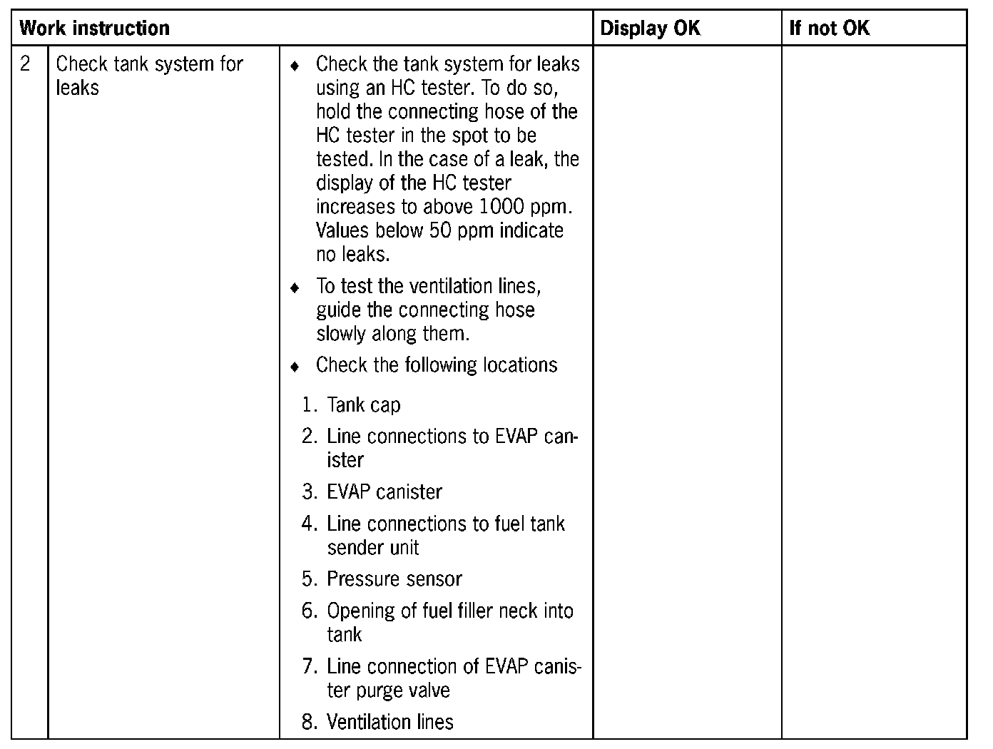 - If no leaks are found, a gauge pressure of max. 100 mbar (0.1 bar) can be generated at the EVAP canister at the connection to the tank using special tool 9160/1, in order to increase the escape of fuel vapours.
