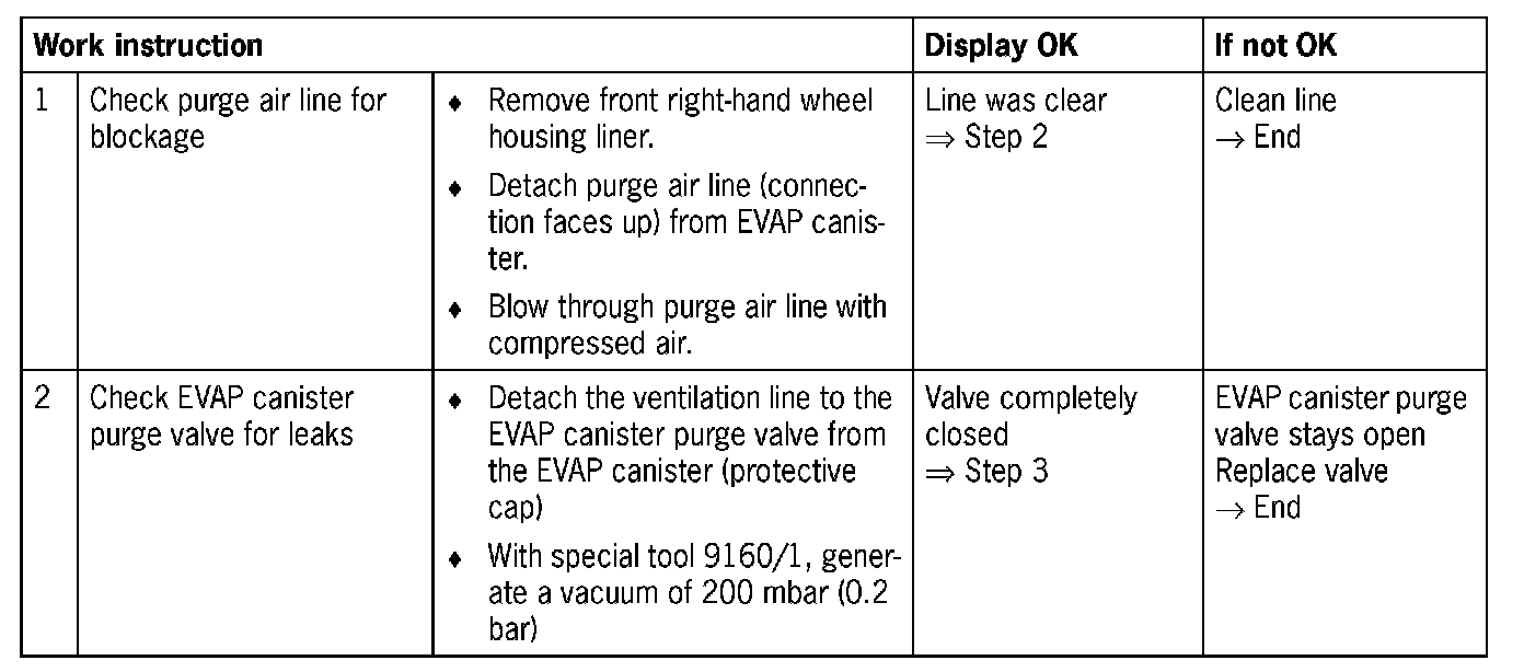 - Flow resistance of EVAP canister too high (filter deformed/ blocked)