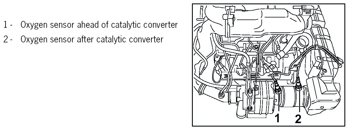 NOTE: Do not exchange oxygen sensors ahead of catalytic converter and after catalytic converter.