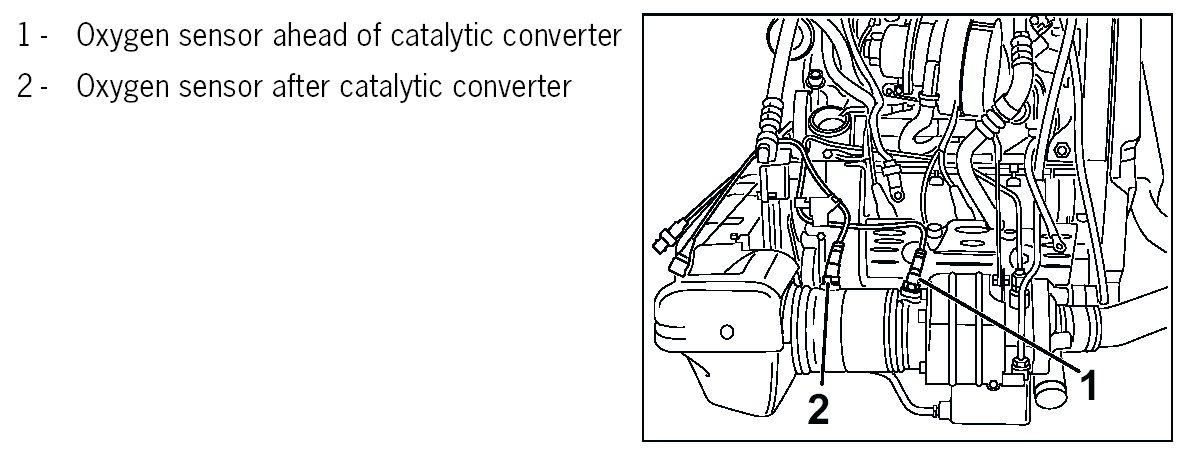 NOTE: Do not exchange oxygen sensors ahead of catalytic converter and after catalytic converter.