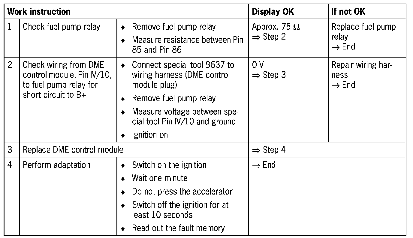 167 Fuel pump relay output stage - open circuit