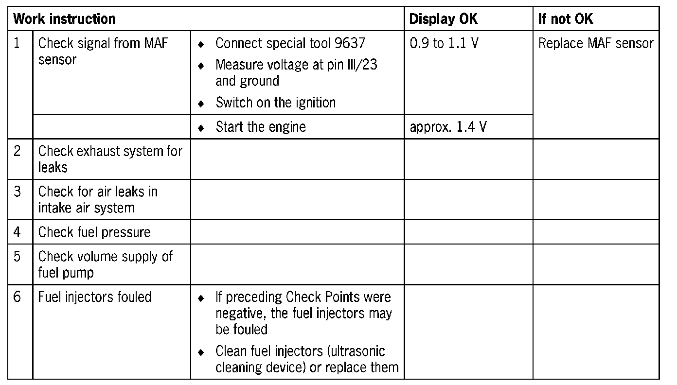 NOTE: Air leaks ahead of the oxygen sensors can lead to a fault in adaptation. Check exhaust system for leaks.
