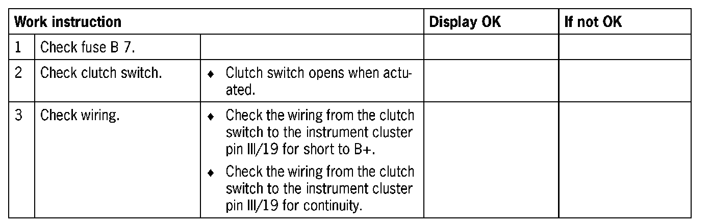 - If a clutch switch fault is stored, the cruise control system is out of order.