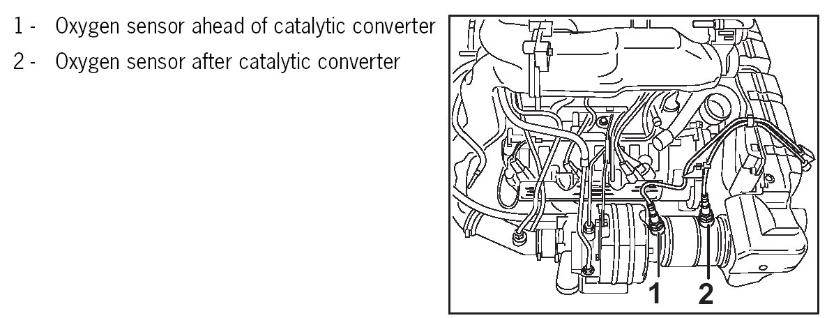 NOTE: Do not exchange oxygen sensors ahead of catalytic converter and after catalytic converter.