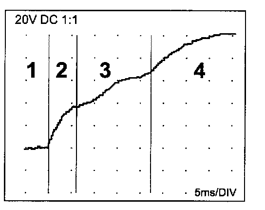 2 - Exponential voltage increase, magnetic field is built up, increase of the spring preload force