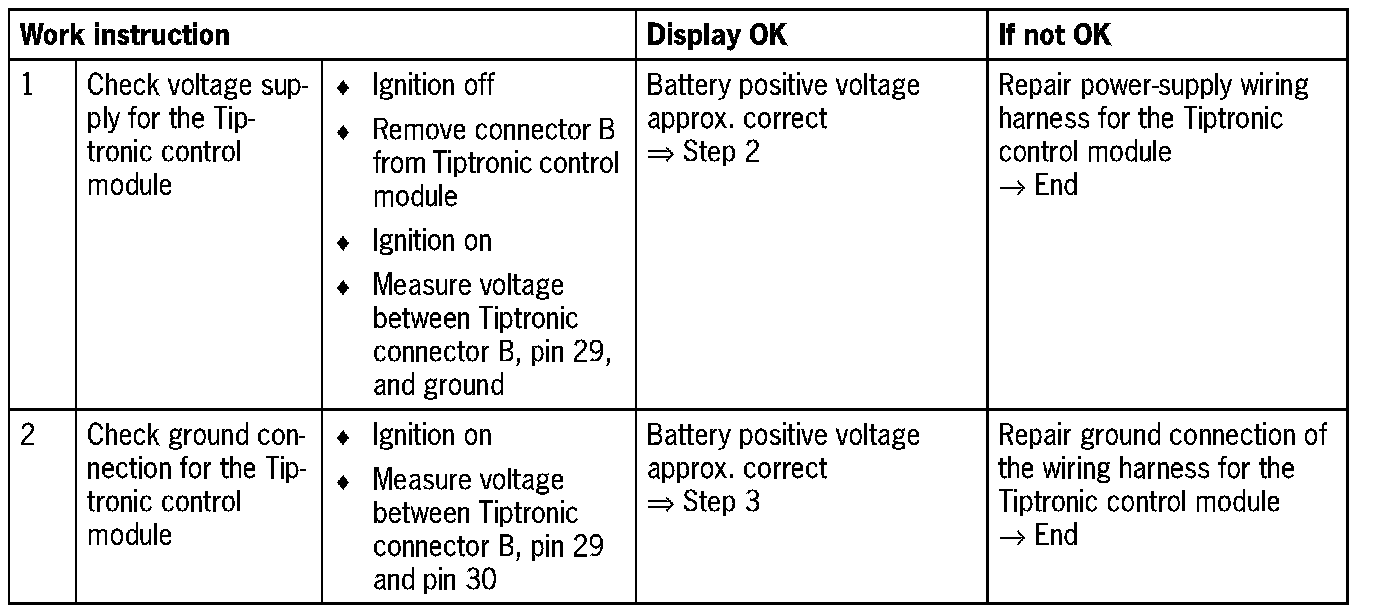 NOTE: The Tiptronic fault memory must be erased prior to diagnosis.