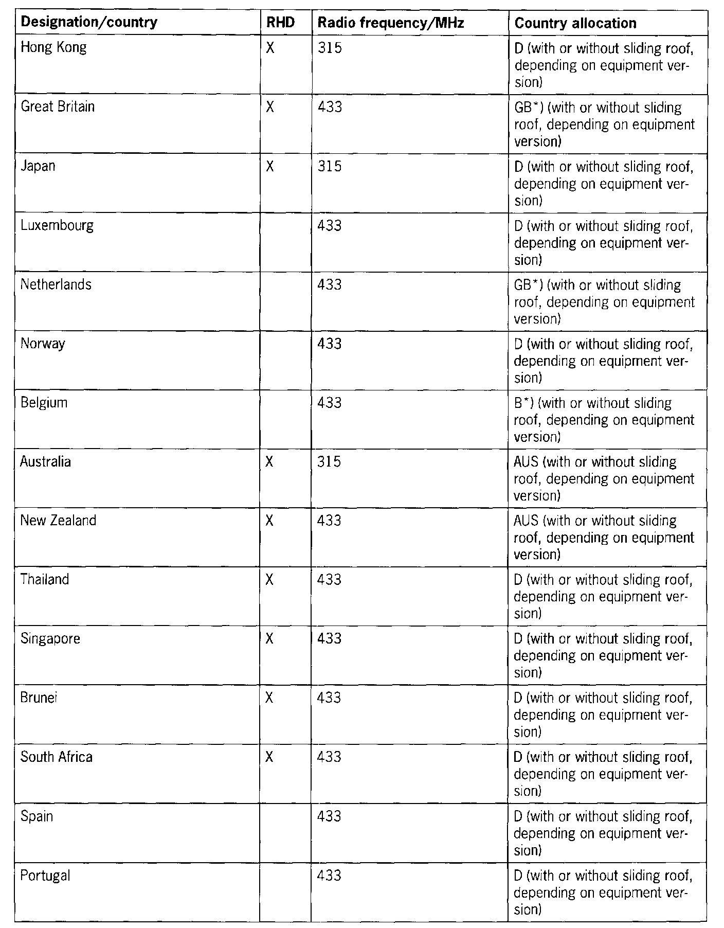 1) * Coded "D" at the factory. The control module is coded "GB" or "B" only at the place of use.