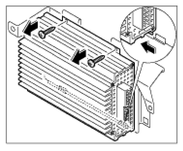 7. Unscrew both fastening screws and pull the amplifier from the fastening clips.