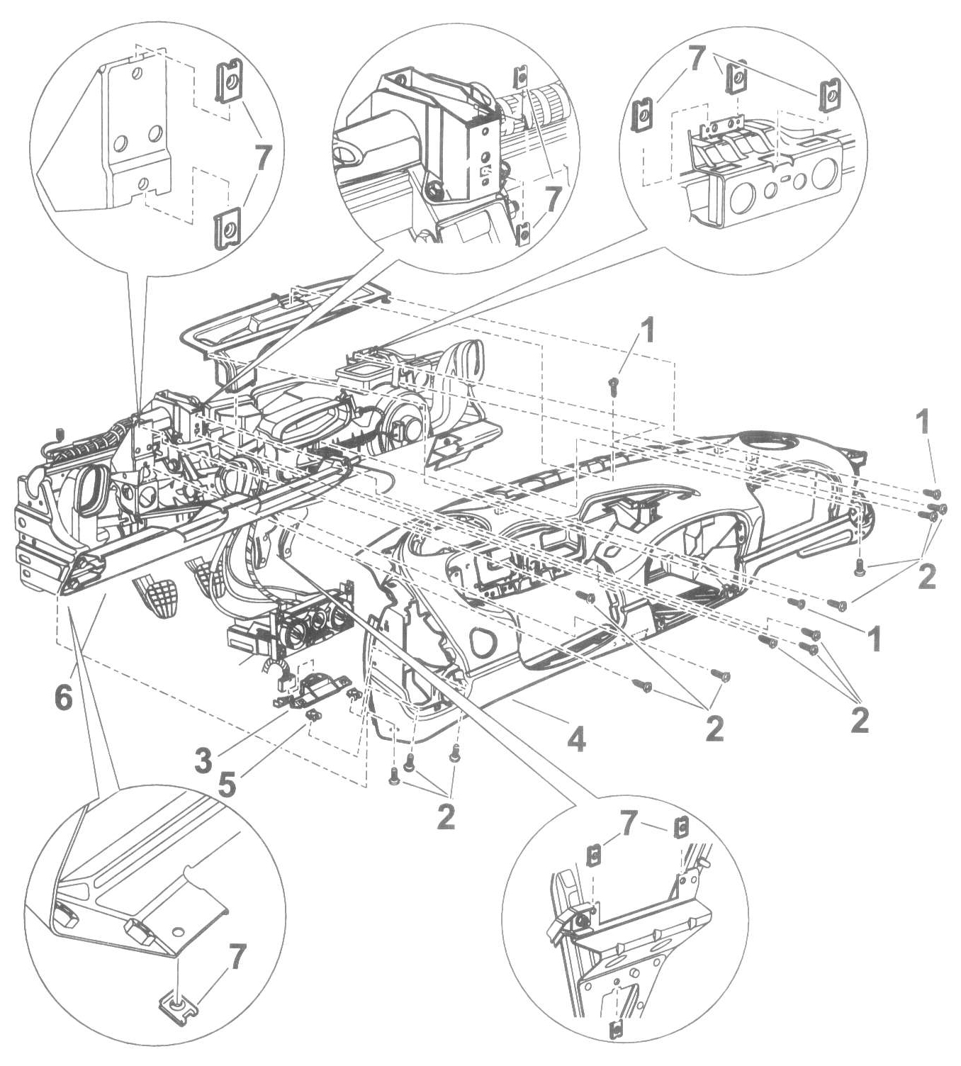 NOTE: Before removing the instrument panel, the instrument panel must be disassembled.