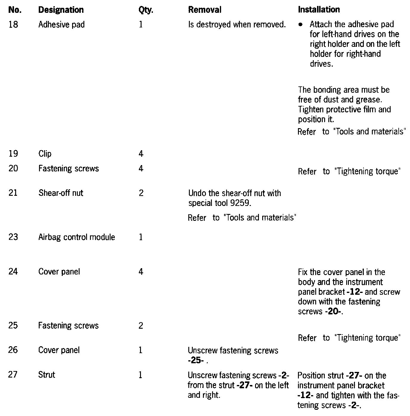 Tightening Torques