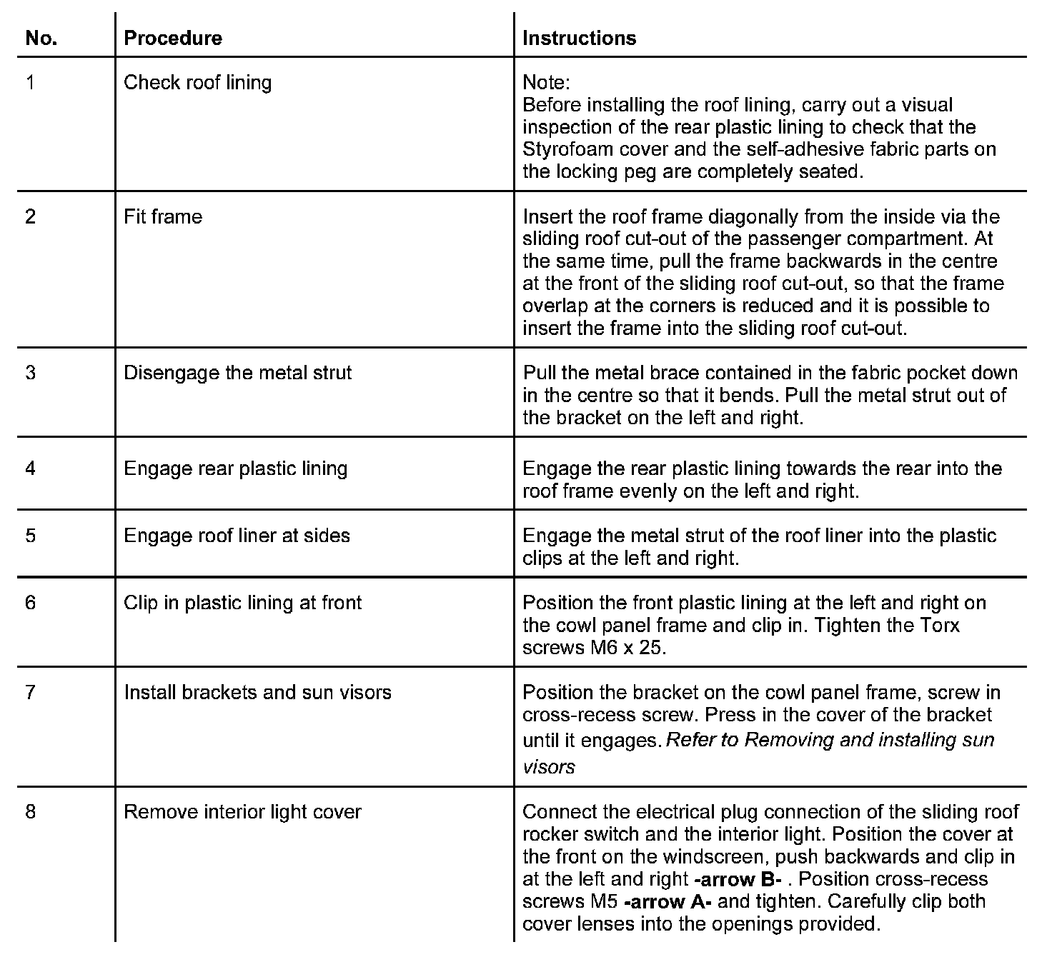 Removing And Installing Roof Lining